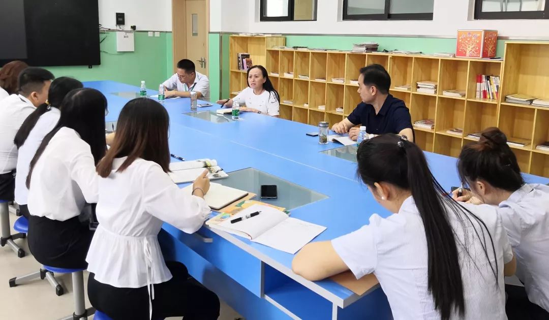 劉裕權教授分別與小學、初中行政領導分享了教育教學中的管理經驗,并與自貢市教科所語文教研員羅世英、富順縣教研室主任王萬祥一起來到小學部,聽取了語文組羅珊老師講授的《觀潮》一課。課后,劉教授從教材新教法的角度提出了寶貴建議,要求每一位教師刻苦鉆研教材,打開思路,做到與時俱進。